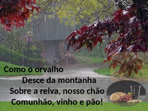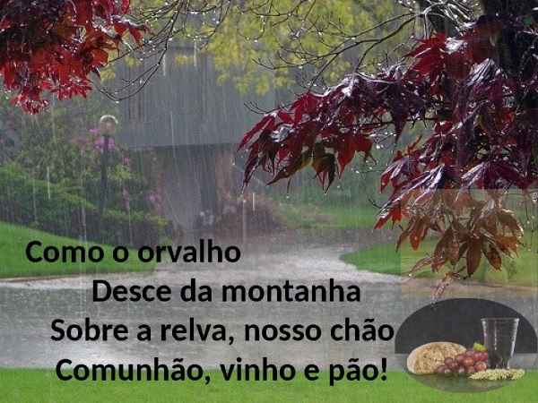 - Como o orvalho Desce da montanhaSobre a relva, nosso chãoComunhão, vinho e pão!