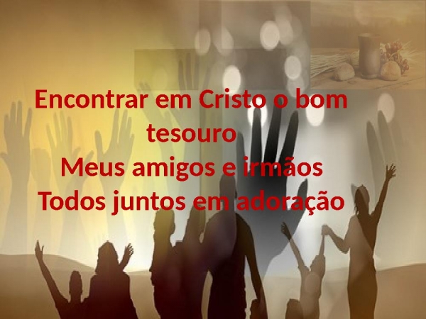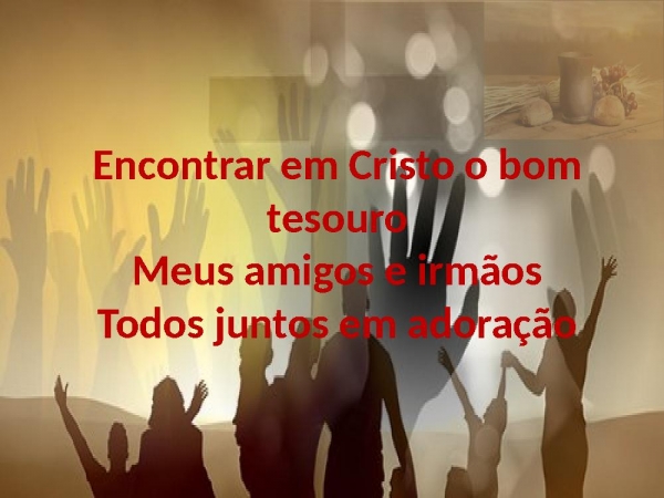 - Encontrar em Cristo o bom tesouroMeus amigos e irmãosTodos juntos em adoração