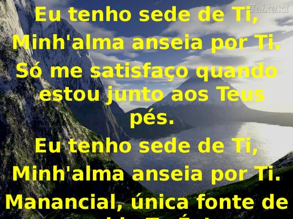 - Eu tenho sede de Ti,Minh'alma anseia por Ti.Só me satisfaço quando estou junto aos Teus pés.Eu tenho sede de Ti,Minh'alma anseia por Ti.Manancial, única fonte de vida Tu És!