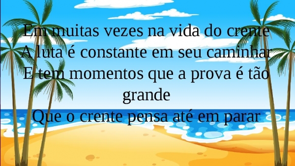 - Em muitas vezes na vida do crenteA luta é constante em seu caminharE tem momentos que a prova é tão grandeQue o crente pensa até em parar