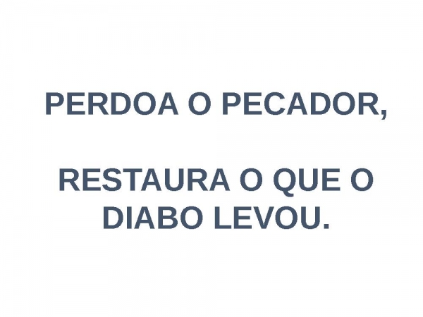 - 20/05/2018PERDOA O PECADOR,RESTAURA O QUE O DIABO LEVOU.