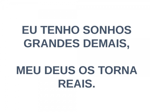 - 20/05/2018EU TENHO SONHOS GRANDES DEMAIS,MEU DEUS OS TORNA REAIS.
