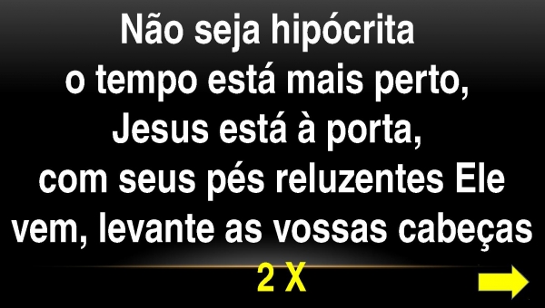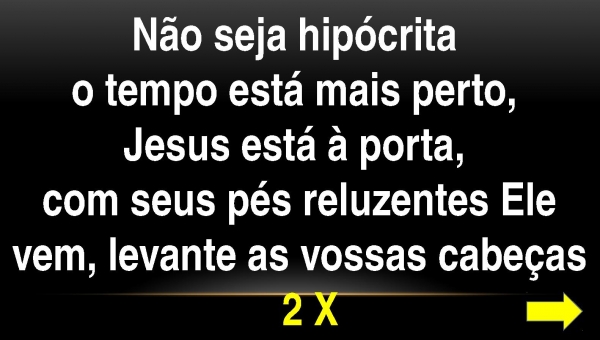 - Não seja hipócrita o tempo está mais perto, Jesus está à porta, com seus pés reluzentes Ele vem, levante as vossas cabeças 2 X