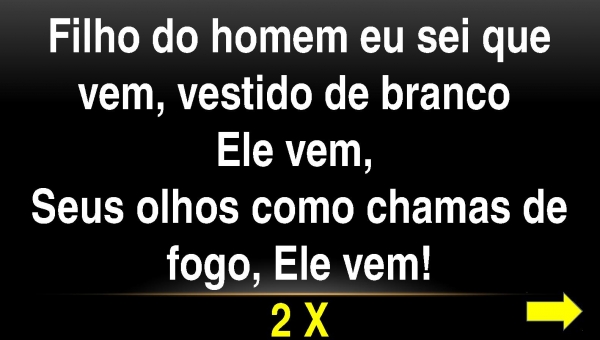 - Filho do homem eu sei que vem, vestido de branco Ele vem, Seus olhos como chamas de fogo, Ele vem!2 X