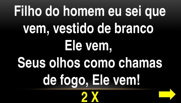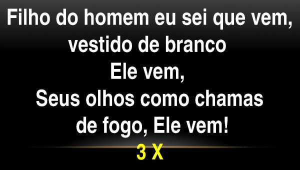 - Filho do homem eu sei que vem, vestido de branco Ele vem, Seus olhos como chamas de fogo, Ele vem!3 X