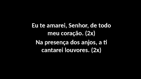 - Eu te amarei, Senhor, de todo meu coração. (2x)Na presença dos anjos, a ti cantarei louvores. (2x)