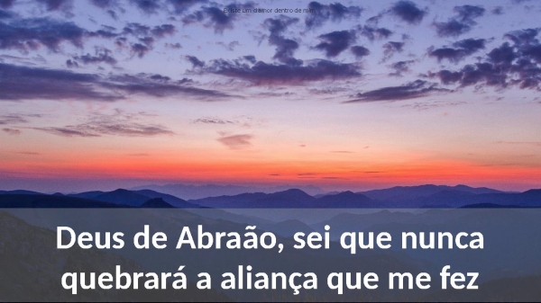 - Deus de Abraão, sei que nunca quebrará a aliança que me fezExiste um clamor dentro de mim