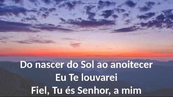 - Do nascer do Sol ao anoitecerEu Te louvareiFiel, Tu és Senhor, a mimExiste um clamor dentro de mim