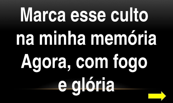 - Marca esse culto na minha memóriaAgora, com fogo e glória