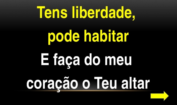 - Tens liberdade, pode habitarE faça do meu coração o Teu altar