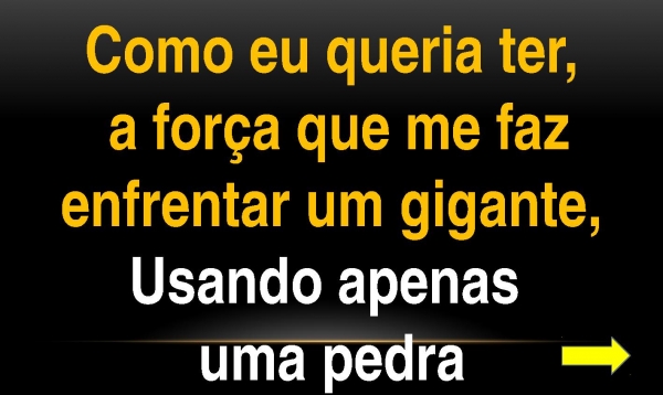 - Como eu queria ter, a força que me faz enfrentar um gigante,Usando apenas uma pedra