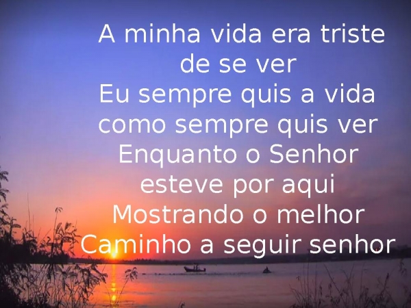 •  A minha vida era triste de se verEu sempre quis a vida como sempre quis verEnquanto o Senhor esteve por aquiMostrando o melhorCaminho a seguir senhor