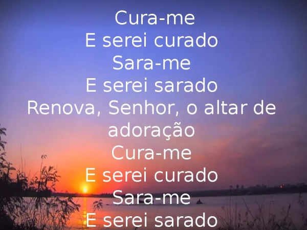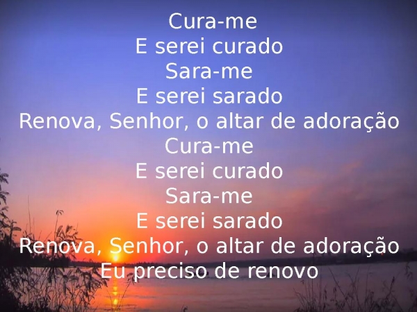 •  Cura-meE serei curadoSara-meE serei saradoRenova, Senhor, o altar de adoraçãoCura-meE serei curadoSara-meE serei sarado