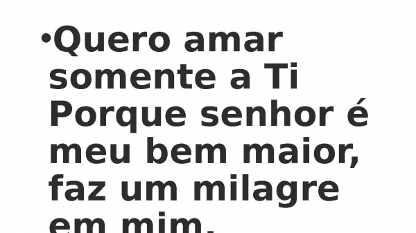 - Quero amar somente a TiPorque senhor é meu bem maior, faz um milagre em mim.
