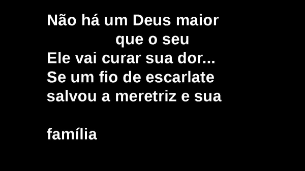 - Não há um Deus maior que o seuEle vai curar sua dor...Se um fio de escarlatesalvou a meretriz e sua família