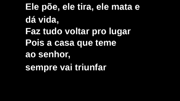 - Ele põe, ele tira, ele mata e dá vida,Faz tudo voltar pro lugarPois a casa que teme ao senhor, sempre vai triunfar