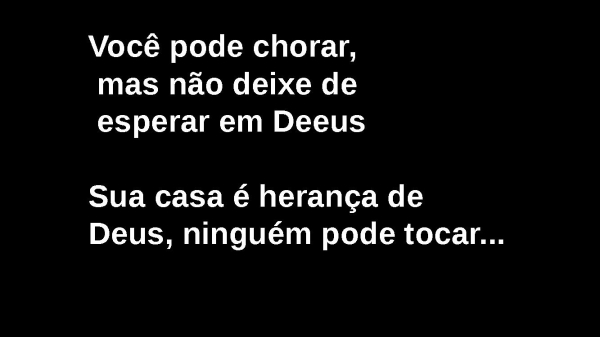 - Você pode chorar, mas não deixe de esperar em DeeusSua casa é herança de Deus, ninguém pode tocar...
