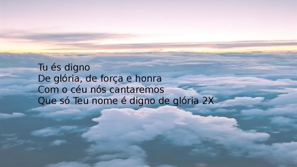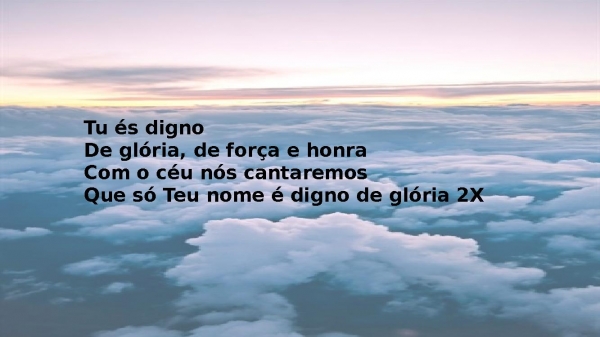 - Tu és dignoDe glória, de força e honraCom o céu nós cantaremosQue só Teu nome é digno de glória