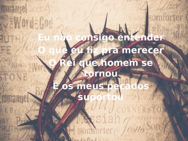 - Eu não consigo entenderO que eu fiz pra merecerO Rei que homem se tornouE os meus pecados suportou