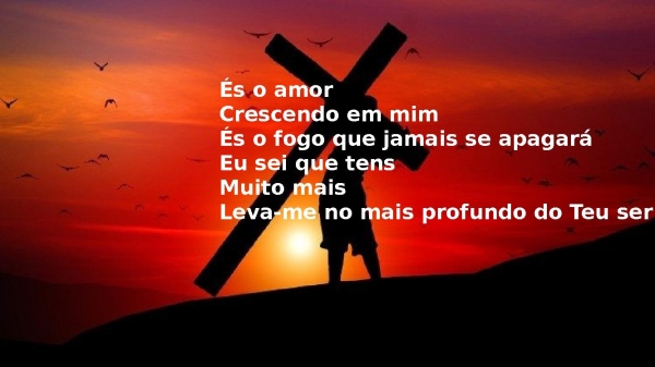 - És o amorCrescendo em mimÉs o fogo que jamais se apagaráEu sei que tensMuito maisLeva-me no mais profundo do Teu ser