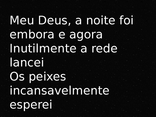 - Meu Deus, a noite foi embora e agoraInutilmente a rede lanceiOs peixes incansavelmente esperei