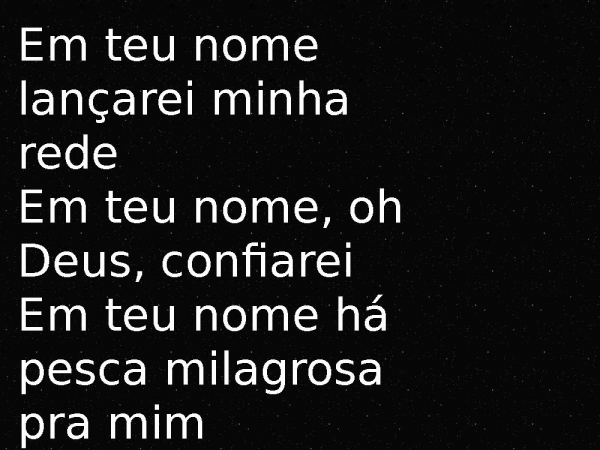 - Em teu nome lançarei minha redeEm teu nome, oh Deus, confiareiEm teu nome há pesca milagrosa pra mimSó quero te ouvir dizer