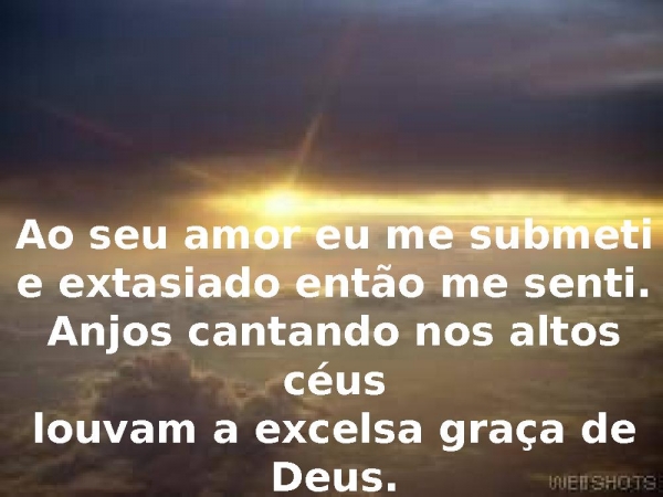- Ao seu amor eu me submetie extasiado então me senti.Anjos cantando nos altos céuslouvam a excelsa graça de Deus.
