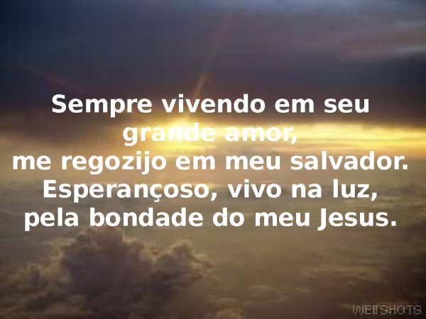 - Sempre vivendo em seu grande amor,me regozijo em meu salvador.Esperançoso, vivo na luz,pela bondade do meu Jesus.