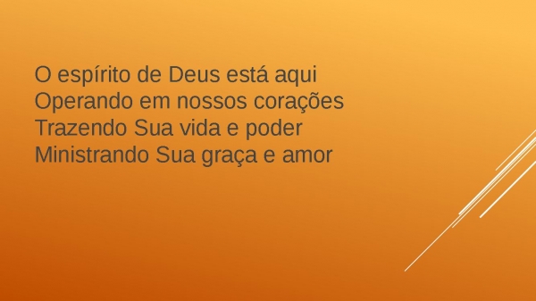 - O espírito de Deus está aquiOperando em nossos coraçõesTrazendo Sua vida e poderMinistrando Sua graça e amor