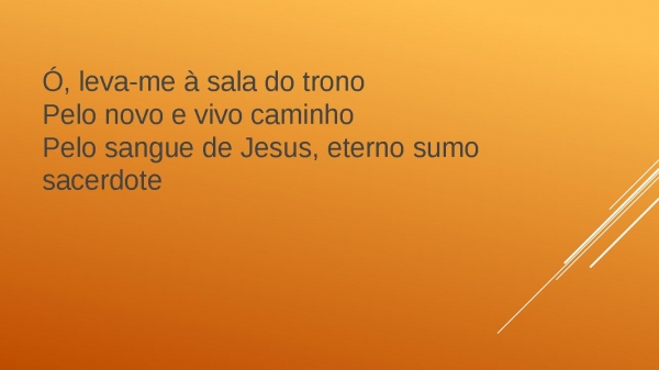 - Ó, leva-me à sala do tronoPelo novo e vivo caminhoPelo sangue de Jesus, eterno sumo sacerdote