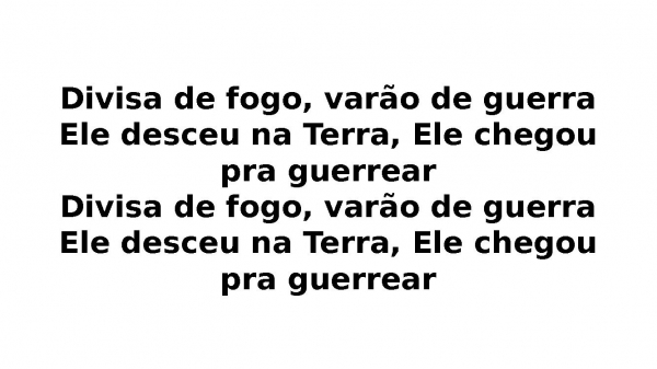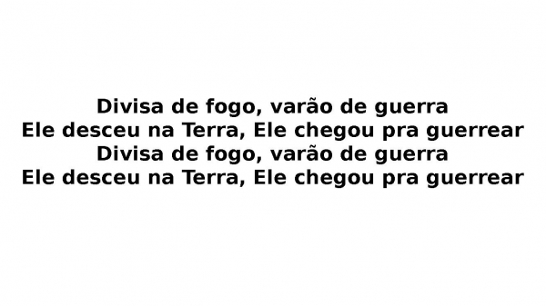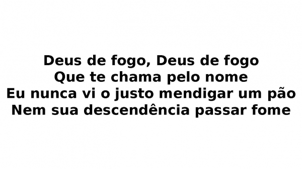 - Deus de fogo, Deus de fogoQue te chama pelo nomeEu nunca vi o justo mendigar um pãoNem sua descendência passar fome