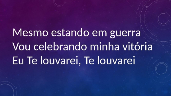 - Mesmo estando em guerraVou celebrando minha vitóriaEu Te louvarei, Te louvarei