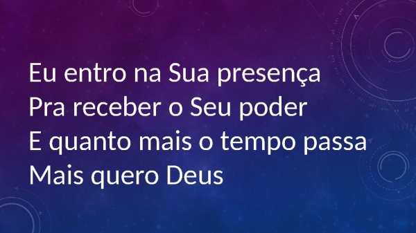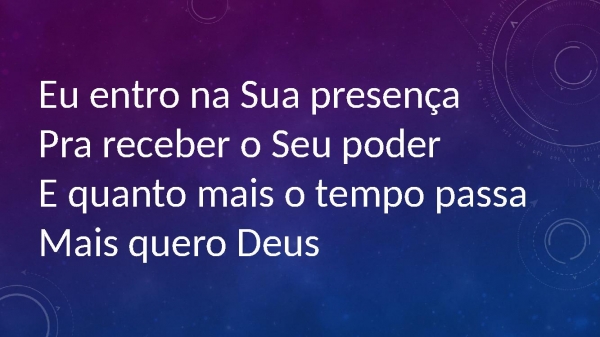 - Eu entro na Sua presençaPra receber o Seu poderE quanto mais o tempo passaMais quero Deus