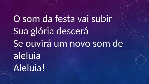 - O som da festa vai subirSua glória desceráSe ouvirá um novo som de aleluiaAleluia!