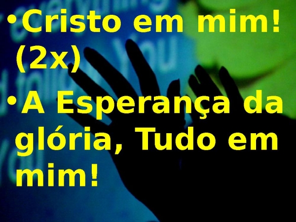 - Cristo em mim! (2x)A Esperança da glória, Tudo em mim!