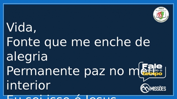 - Vida, Fonte que me enche de alegriaPermanente paz no meu interiorEu sei isso é Jesus