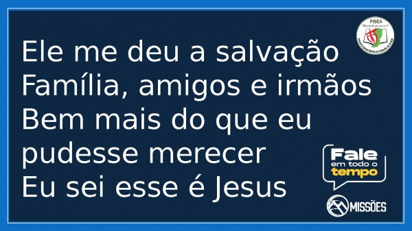 - Ele me deu a salvaçãoFamília, amigos e irmãosBem mais do que eu pudesse merecerEu sei esse é Jesus