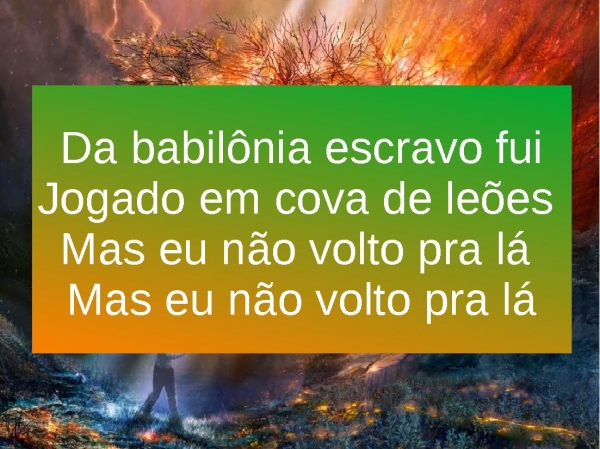 - Da babilônia escravo fuiJogado em cova de leões Mas eu não volto pra lá Mas eu não volto pra lá