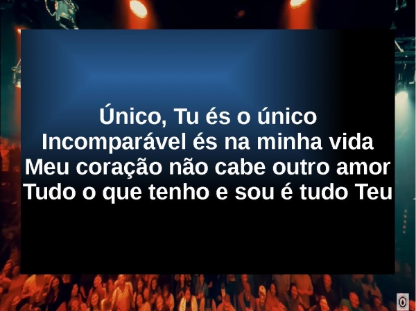 - Único, Tu és o únicoIncomparável és na minha vidaMeu coração não cabe outro amorTudo o que tenho e sou é tudo Teu