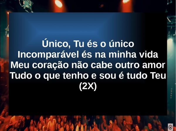 - Único, Tu és o únicoIncomparável és na minha vidaMeu coração não cabe outro amorTudo o que tenho e sou é tudo Teu(2X)