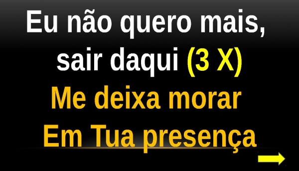 - Eu não quero mais, sair daqui (3 X)Me deixa morar Em Tua presença