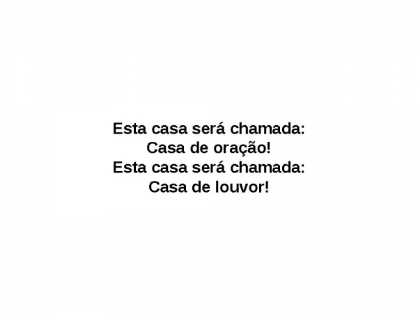 - Esta casa será chamada:Casa de oração!Esta casa será chamada:Casa de louvor!