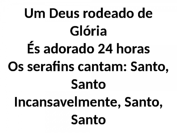 - Um Deus rodeado de GlóriaÉs adorado 24 horasOs serafins cantam: Santo, SantoIncansavelmente, Santo, Santo