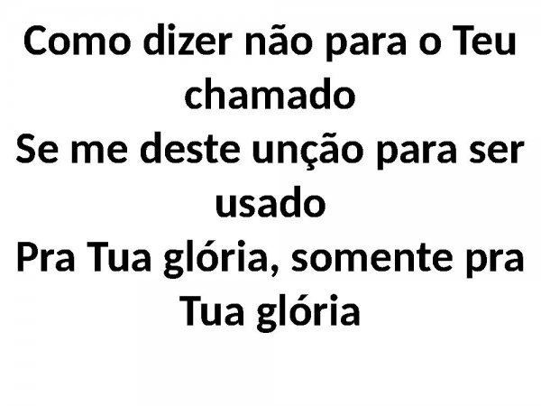 - Como dizer não para o Teu chamadoSe me deste unção para ser usadoPra Tua glória, somente pra Tua glória