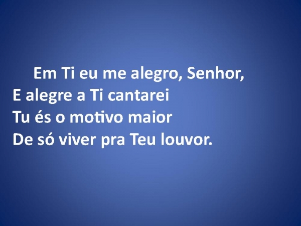 - Em Ti eu me alegro, Senhor, E alegre a Ti cantarei Tu és o motivo maior De só viver pra Teu louvor.