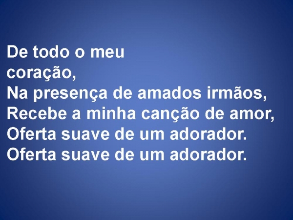 - De todo o meu coração, Na presença de amados irmãos, Recebe a minha canção de amor, Oferta suave de um adorador. Oferta suave de um adorador.