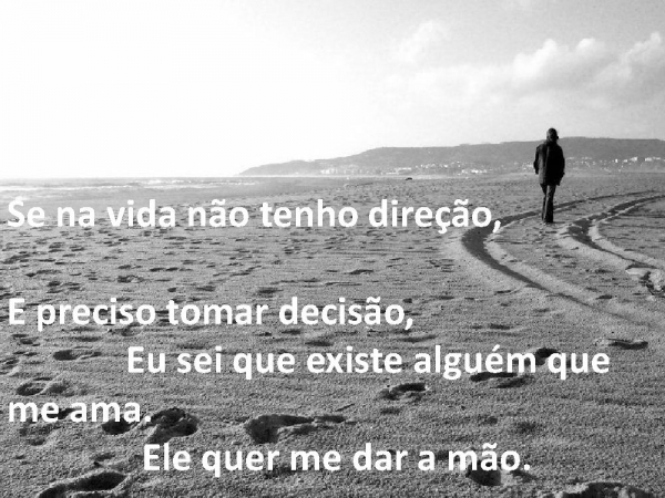 - Se na vida não tenho direção, E preciso tomar decisão, Eu sei que existe alguém que me ama. Ele quer me dar a mão.