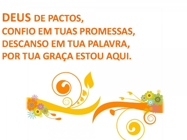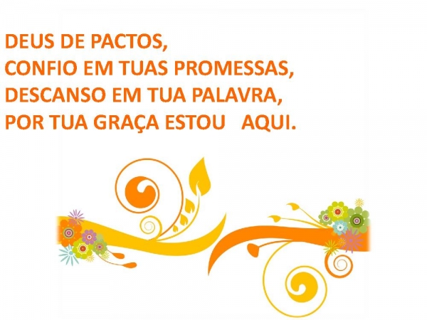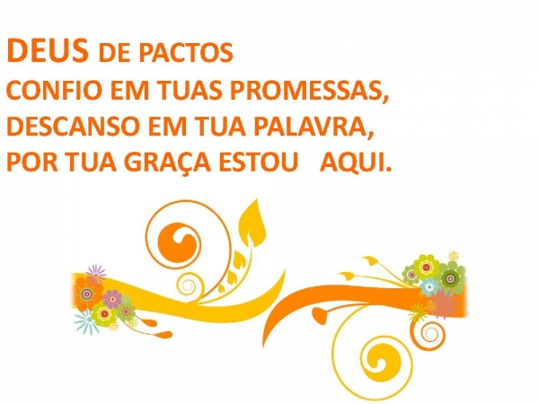 - DEUS DE PACTOS, CONFIO EM TUAS PROMESSAS, DESCANSO EM TUA PALAVRA, POR TUA GRAÇA ESTOU AQUI.