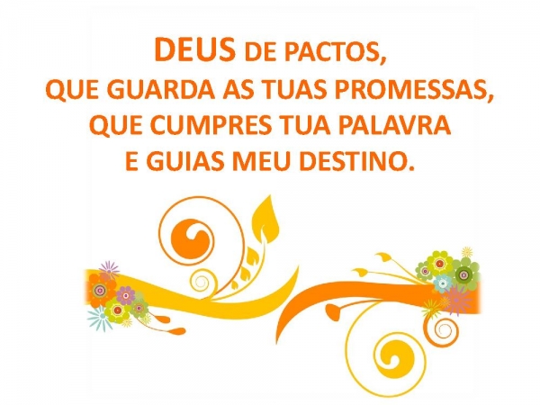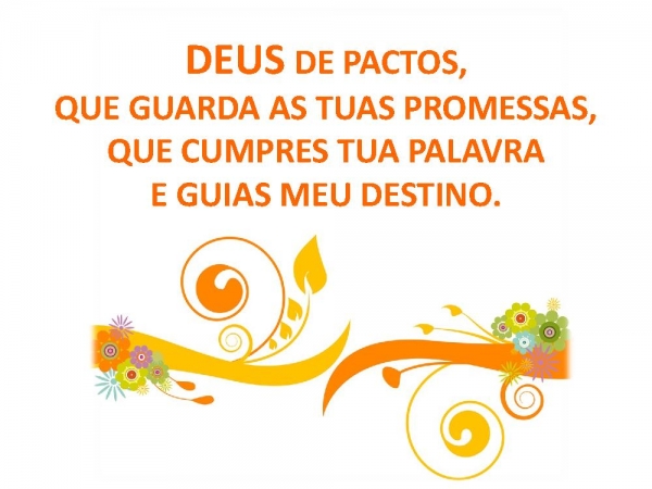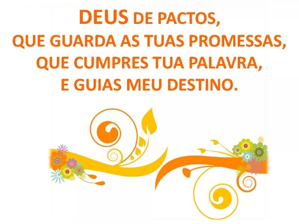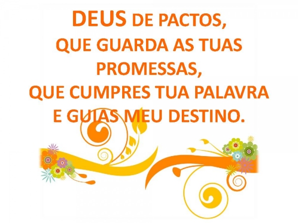 - DEUS DE PACTOS,QUE GUARDA AS TUAS PROMESSAS,QUE CUMPRES TUA PALAVRA,E GUIAS MEU DESTINO.