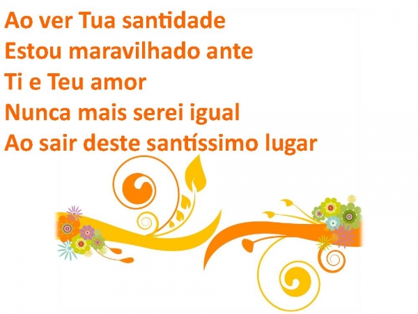 - Ao ver Tua santidade Estou maravilhado ante Ti e Teu amor Nunca mais serei igual Ao sair deste santíssimo lugar